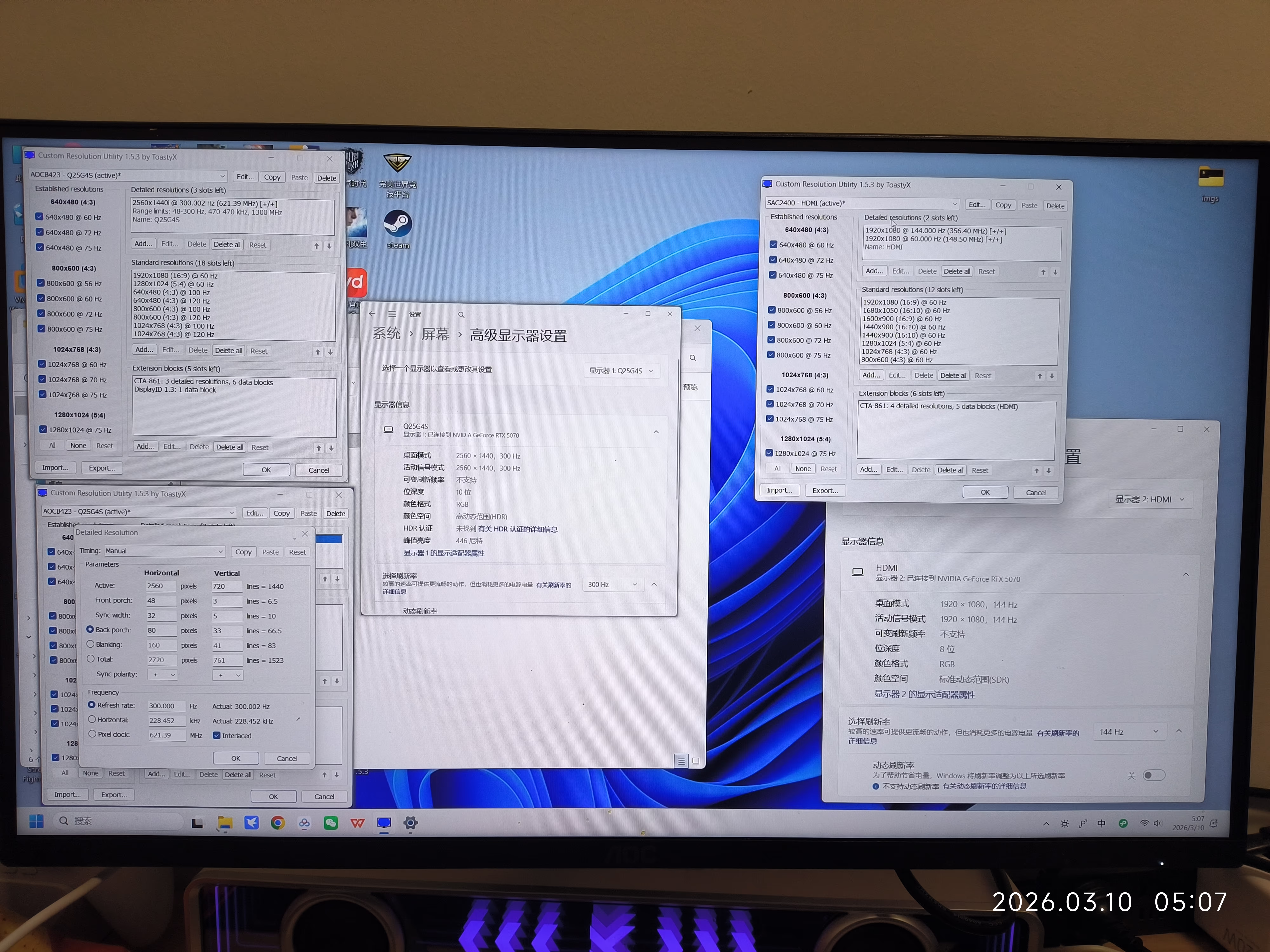 对于 300hz 的,得把 detailed resolutions 默认的第一个改成 300hz+interlaced。我这里改完后就是 2560x1440i@300hz
